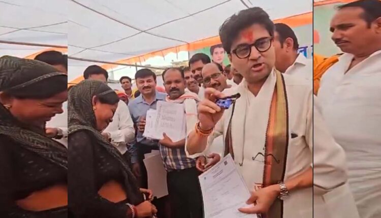 केंद्रीय मंत्री ज्योतिरादित्य सिंधिया मध्य प्रदेश के शिवपुरी जिले के खनियाधाना में एक हितग्राही सम्मेलन में शिरकत करने पहुंचे थे। यहां वे हितग्राहियों को सर्टिफिकेट बांट रहे थे इसी दौरान मुंह में गुटखा दबाए एक महिला हितग्राही उसने सर्टिफिकेट लेने पहुंची।