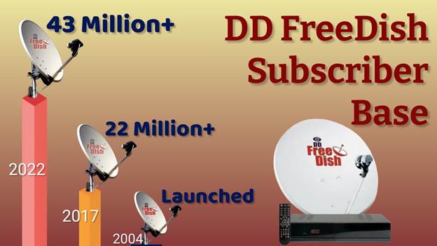 2004 और 2017 के बीच 13 वर्षों में 22 मिलियन ग्राहकों की तुलना में, डीडी फ्री डिश ने पिछले 5 वर्षों अर्थात 2017 और 2022 के बीच, 21 मिलियन और ग्राहक जोड़े हैं, जो अब बढ़कर कुल 43 मिलियन हो गए हैं।
