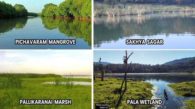 भारत ने अंतरराष्ट्रीय महत्व के पांच (5) नए आर्द्रभूमि स्थल नामित किए हैं, जिसमें तमिलनाडु में तीन आर्द्रभूमि स्थल (करीकिली पक्षी अभयारण्य, पल्लिकरनई मार्श रिजर्व फॉरेस्ट और पिचवरम मैंग्रोव), मिजोरम में एक (पाला आर्द्रभूमि) और मध्य प्रदेश में एक आर्द्रभूमि स्थल (साख्य सागर) शामिल हैं। इस प्रकार, देश में रामसर स्थलों की कुल संख्या 49 से बढ़कर 54 हो गयी है।