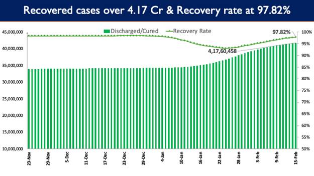 नतीजतन, भारत में स्वस्थ होने की दर 97.82 प्रतिशत है।