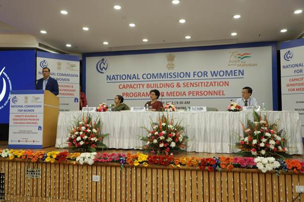राष्ट्रीय महिला आयोग (एनसीडब्ल्यू) ने महिलाओं से संबंधित मुद्दों और मीडिया में महिलाओं के चित्रण पर ध्यान केंद्रित करने के लिए ‘मीडिया कर्मियों के लिए क्षमता निर्माण और संवेदीकरण कार्यक्रम’ विषय पर एक कार्यशाला का आयोजन किया। इस अवसर पर राष्ट्रीय महिला आयोग की अध्यक्ष सुश्री रेखा शर्मा और इंडिया टीवी के अध्यक्ष और प्रधान संपादक श्री रजत शर्मा उपस्थित थे।