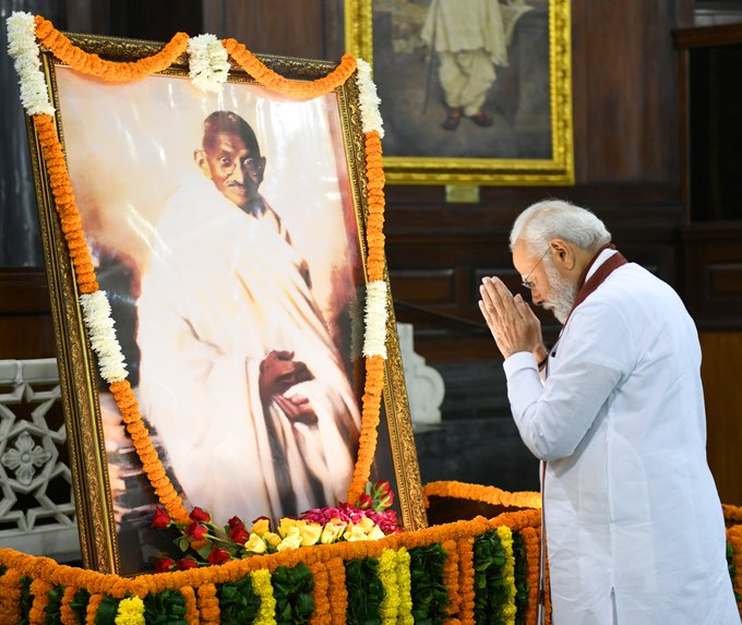 “इससे पहले आज, प्रधानमंत्री @narendramodi ने संसद भवन में महात्मा गांधी को श्रद्धांजलि अर्पित की”