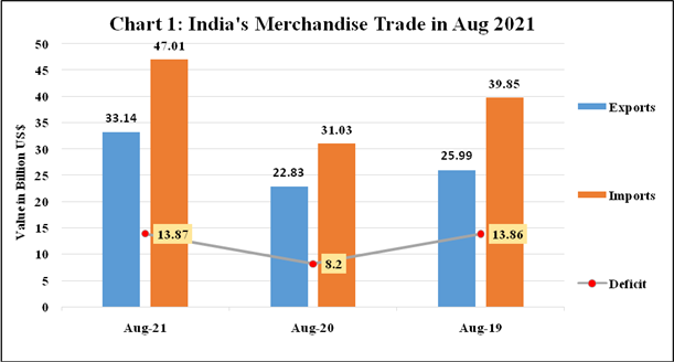 भारत का वस्तु व्यापार 2021-22 (अप्रैल-जनवरी) में 46.53 प्रतिशत बढ़ा और यह 2020-21 (अप्रैल-जनवरी) के 228.9 बिलियन डॉलर की तुलना में 335.44 बिलियन डॉलर तक पहुंच गया, 2019-20 (अप्रैल-जनवरी) के 264.13 बिलियन डॉलर की तुलना में इसमें 27.0 प्रतिशत से अधिक वृद्धि दर्ज की गई
