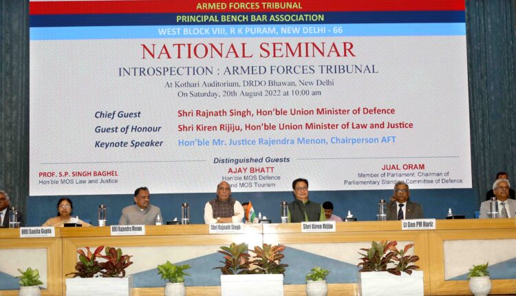 रक्षा मंत्री श्री राजनाथ सिंह ने कहा कि सरकार सशस्त्र बल न्यायाधिकरण को अधिक सशक्त और उत्तरदायी बनाने तथा इस दिशा में आवश्यक उपायों को लागू करने के लिए प्रतिबद्ध है। आज नई दिल्ली में सशस्त्र बल न्यायाधिकरण की प्रिंसिपल बेंच एसोसिएशन द्वारा आयोजित ‘आत्मनिरीक्षण: सशस्त्र बल न्यायाधिकरण’ नामक सेमिनार को संबोधित करते हुए श्री राजनाथ सिंह ने कहा कि न्यायपालिका लोकतंत्र का एक मजबूत स्तंभ है और न्यायिक अधिकारी तथा अधिवक्ता न्याय प्रणाली के स्तंभ हैं। उन्होंने कहा कि लोग न्याय का दरवाजा तब खटखटाते हैं जब उनके लिए अन्य सभी विकल्प समाप्त हो जाते हैं और मजबूत न्याय वितरण प्रणाली “सूरज” या सुशासन का आधार होती है।