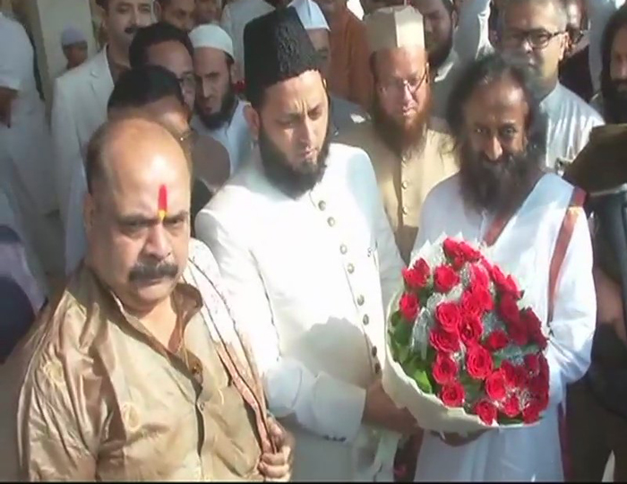 #UttarPradesh: Sri Sri Ravi Shankar reaches Aishbagh Eidgah in #Lucknow to meet AIMPLB's Khalid Rasheed Firangi Mahali. pic.twitter.com/yvl6Px9ngu