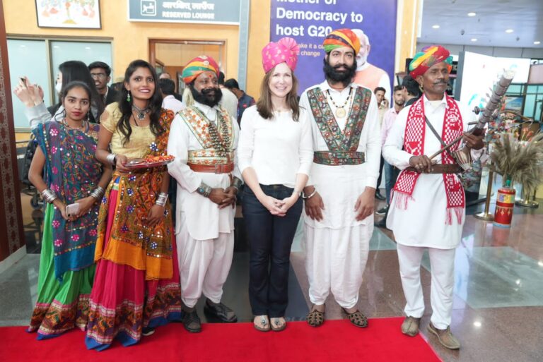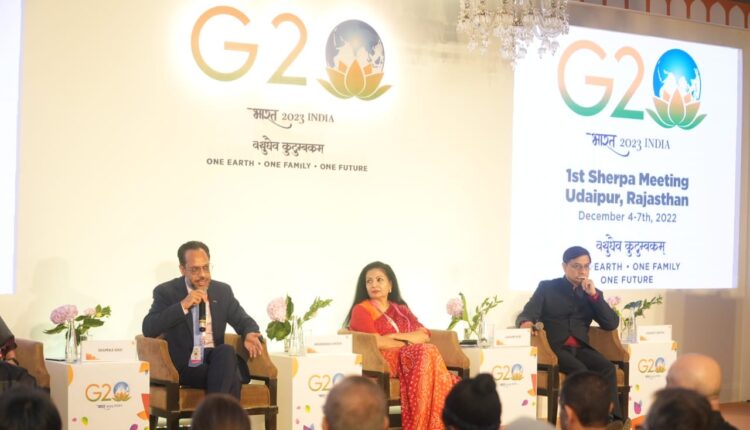 नई दिल्ली, 5दिसंबर।भारत की जी-20 अध्यक्षता की पहली शेरपा बैठक का आज, 04 दिसंबर 2022 को राजस्थान के उदयपुर में शुभारंभ हुआ। मीडिया के साथ वार्तालाप और परस्पर संवाद की एक श्रृंखला और 2030 एजेंडे के मध्य में बदलती जिन्दगी पर: कैस्केडिंग और विविध संकटों के युग में सतत विकास लक्ष्यों की त्वरित उपलब्धि विषय एक साइड कार्यक्रम का आयोजन किया गया। इस दिन उदयपुर में शेरपाओं और विभिन्न जी-20 देशों के प्रतिनिधिमंडलों और आमंत्रित अंतर्राष्ट्रीय संगठनों के प्रमुखों का भी आगमन हुआ। प्रतिनिधियों का स्वागत करने और उन्हें भारतीय आतिथ्य और प्रदर्शन कला की परंपरा से परिचय कराने के लिए विभिन्न राजस्थानी सांस्कृतिक कार्यक्रमों का आयोजन किया गया।